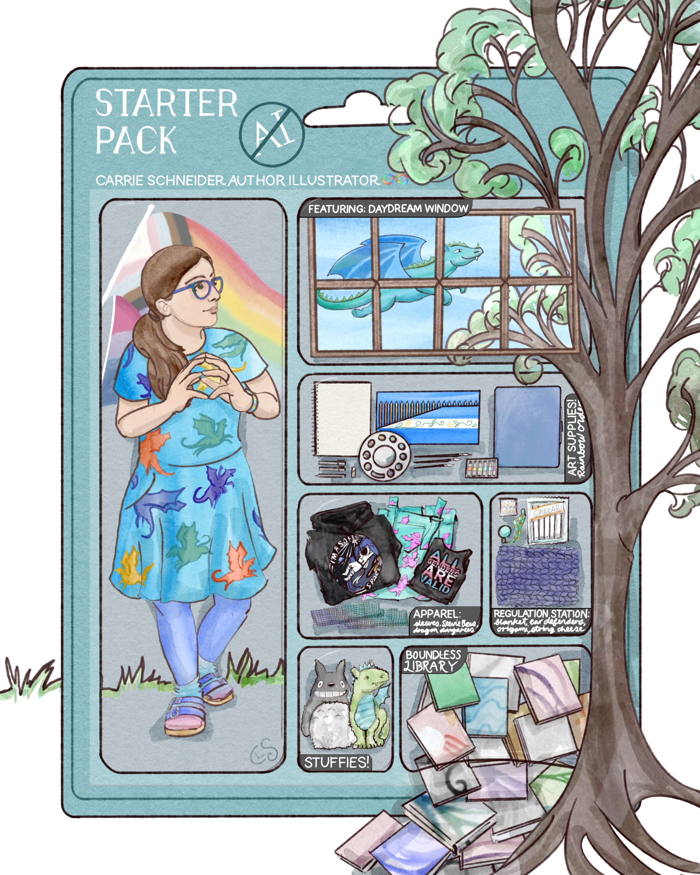 Without further ado, here’s mine! My 100%* human-dreamed, human-drawn starter pack (*okay, I’m possibly part dragon, but for sure 0% robot!)