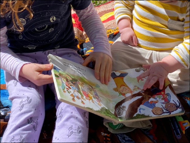 my children reading a favorite book, One Love by Cedella Marley