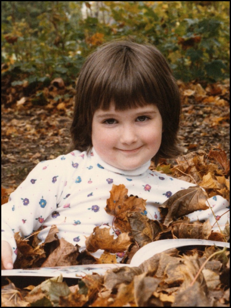 Me as a child. (Leaf piles were itchy but worth it!)