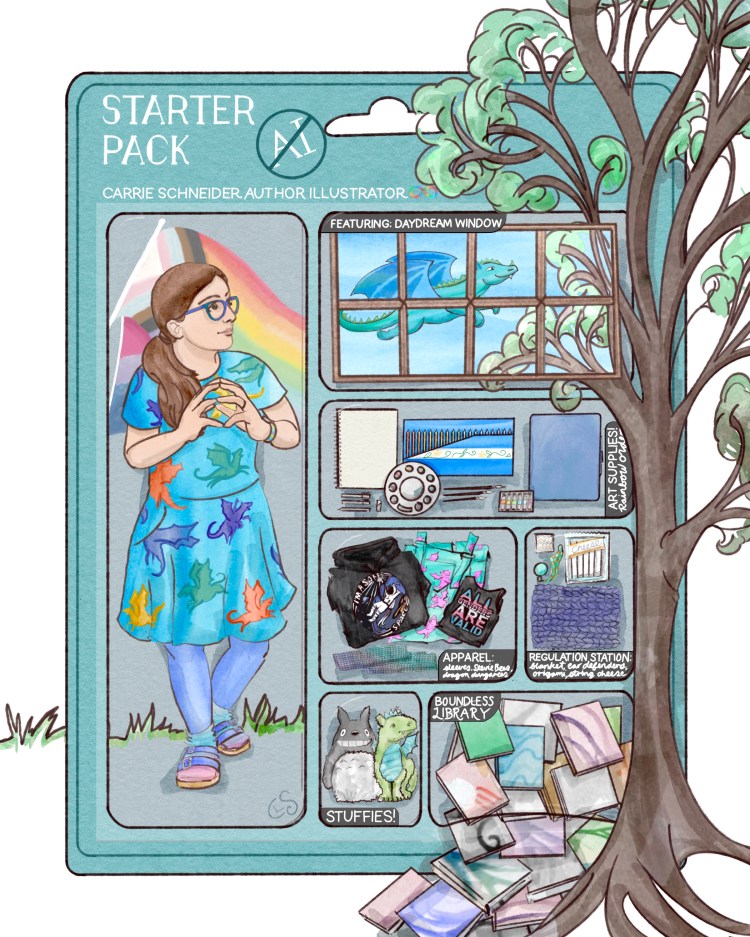I’m a neurodivergent (autistic + ADHD) and queer author-illustrator of magical, identity-affirming stories for children of all ages. I’m creating both picture books and middle-grade books, many of which center neurodivergent experiences while exploring the hopes, talents, struggles, doubts, adventures, connections, and more that we are so capable of. You’ll find depth, sincerity, and joy in my stories — as well as ducks and dragons!